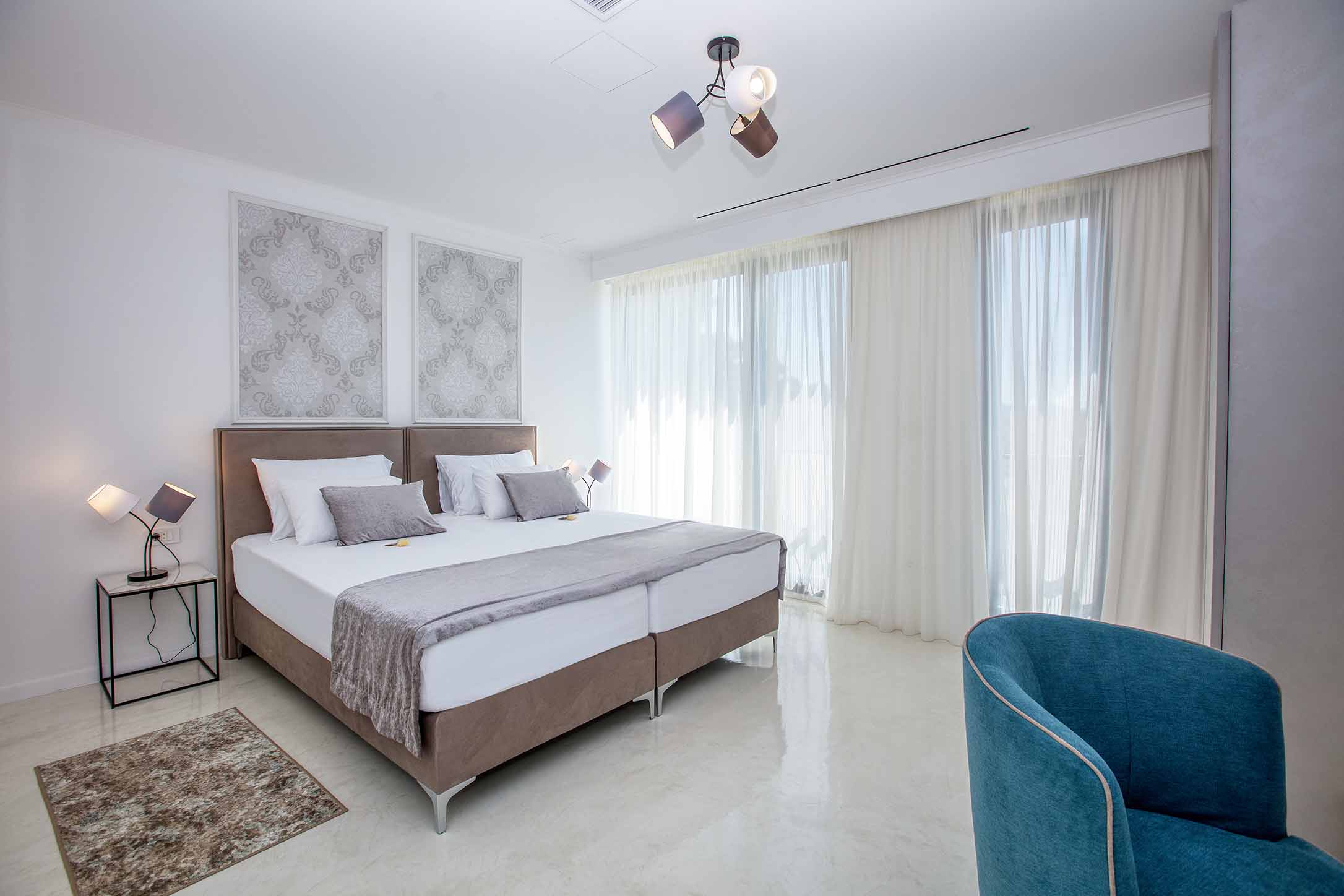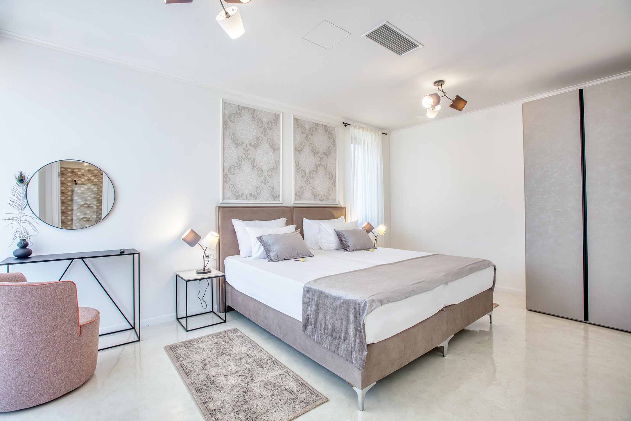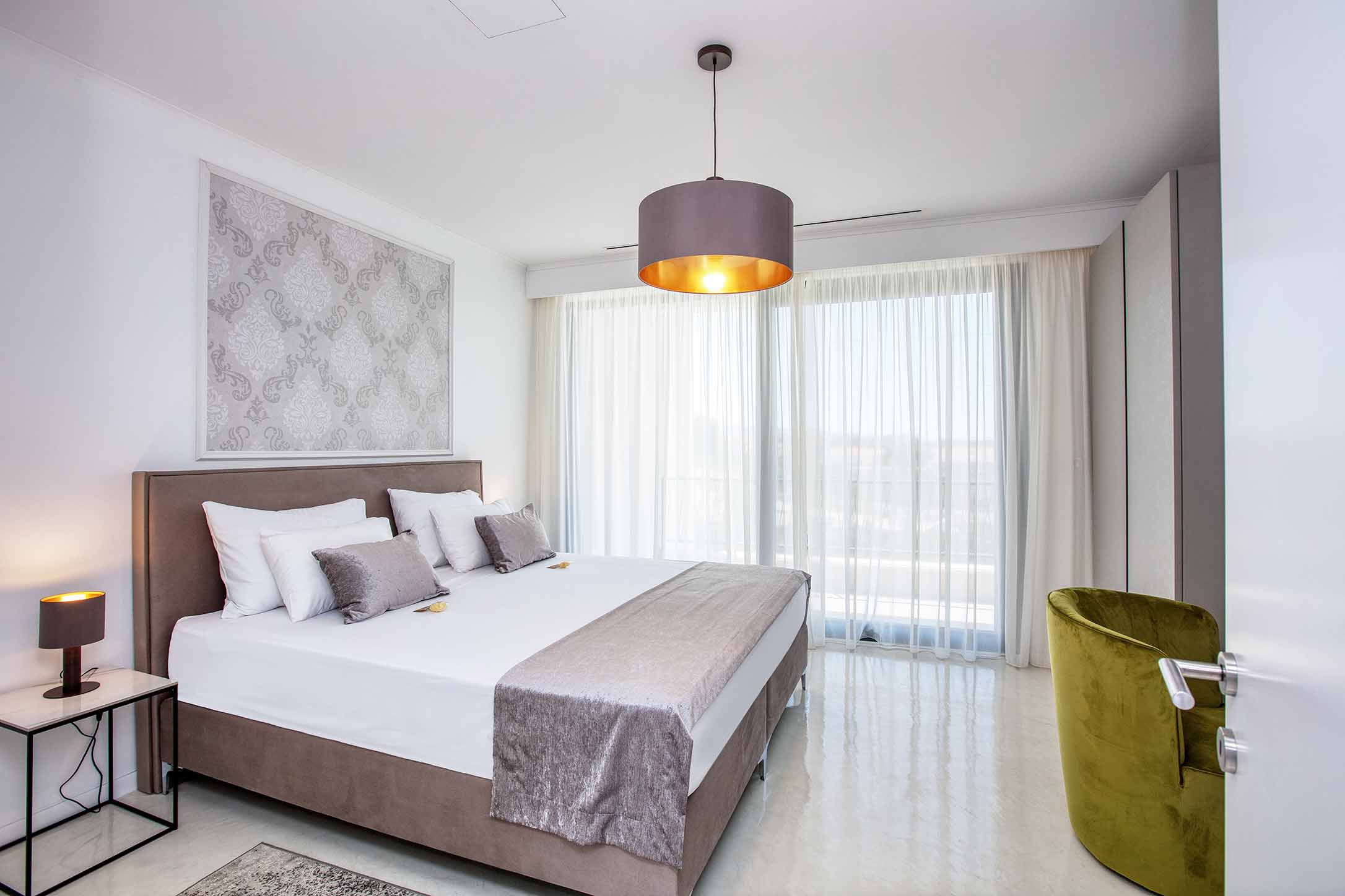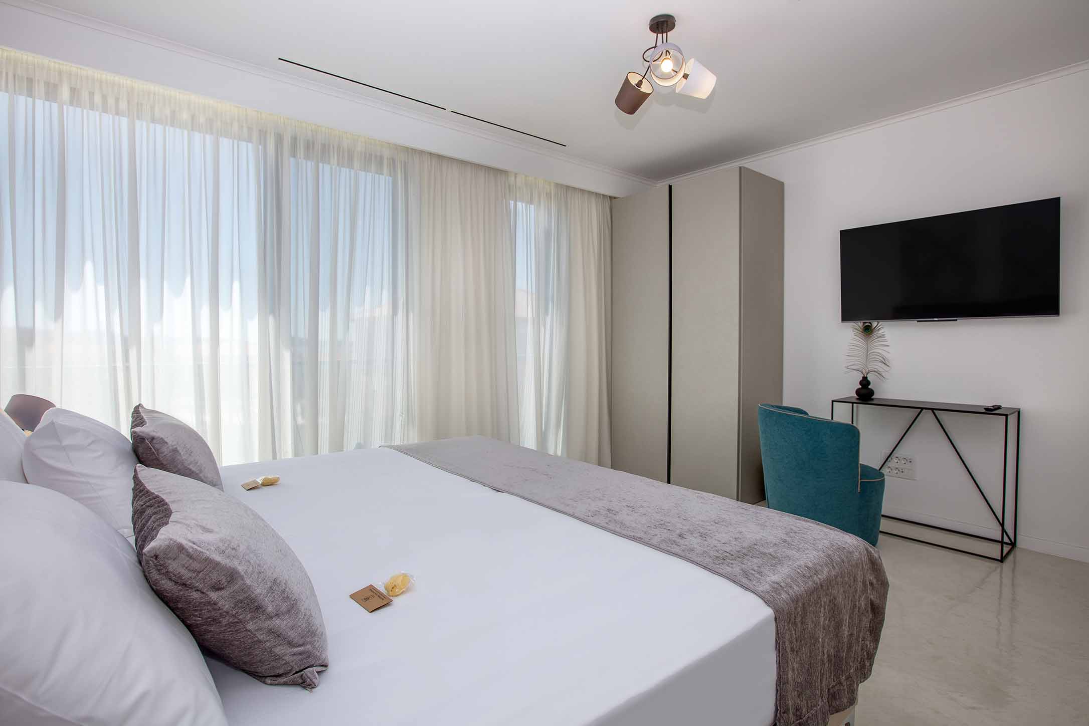 The master rooms consists of a king size bed, bathroom, flat tv and wardrobe. All rooms have a balcony with a beautiful ocean view.